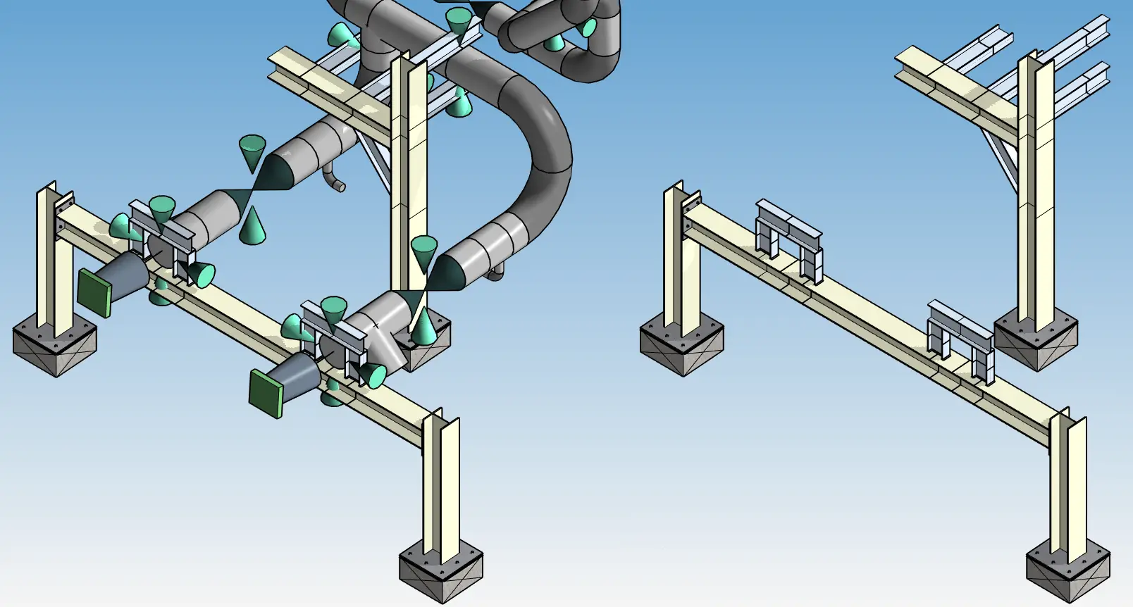 A link mechanism allow user to share the 3D model with other studies; a piping system can be drawn based on the support positions or inversely, the structural supports are drawn based on piping positions. Useful!